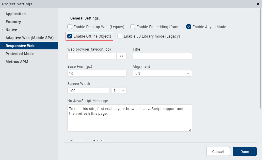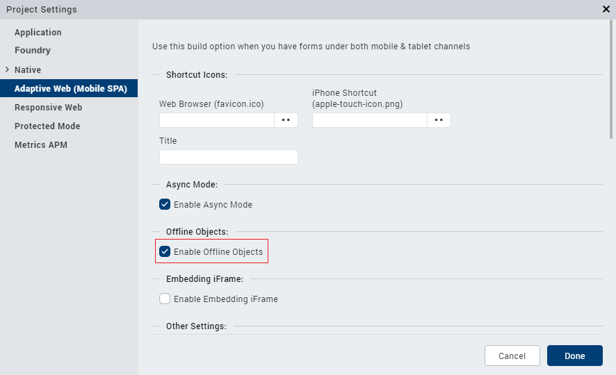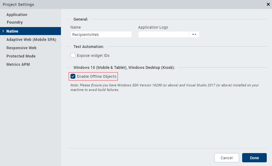 Enable the Offline Objects feature for the respective platforms. To do so, go to Project > Settings, and select the Offline Objects check box for the respective platforms.