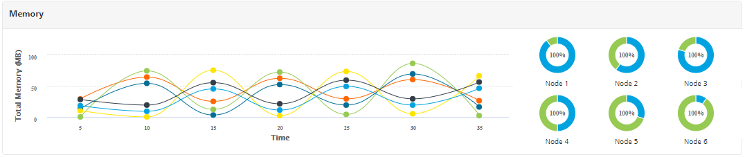 The line graph displays the memory usage across all the nodes within the selected time period by default, with each line representing a node. Select a node in the Node Filter to view the line graph specific to that node.