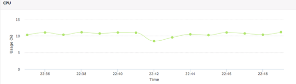 The line graph displays the CPU usage across each node within the selected time period by default, with each line representing a node. Select a node in the Node Filter to view the line graph specific to that node.