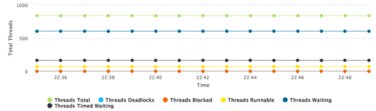 The doughnut charts for threads processed displays various states of the threads such as Waiting, Runnable, Timed Waiting, Blocked and so on.