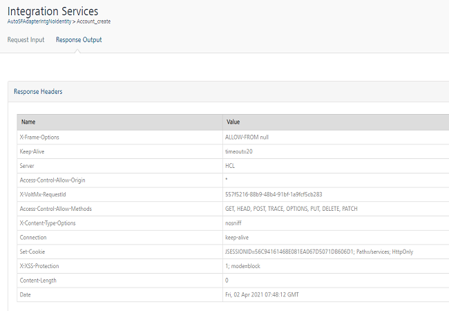 The response received for the input request sent is displayed in the Response Output page. The page contains two sections: