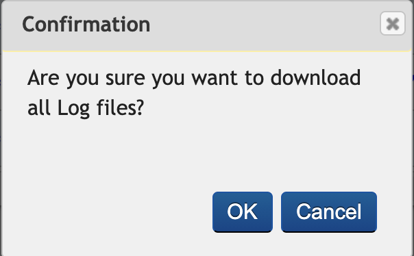 A pop-up appears with the message, Are you sure you want to download all Log files?.