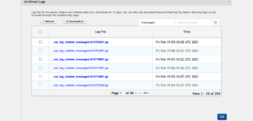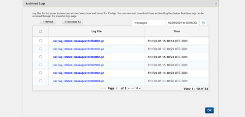 Click OK to download the selected snapshot logs.