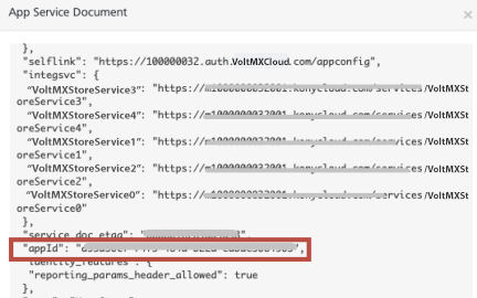 Field Description Login ID This refers to the userID field set in the application. This can be set by using an identity service or by using voltmx.setUserID()in the application. Refer VoltMX Iris SDK > setuserID APIApp ID This refers to the Volt MX Foundry appId that is available when an app is published to an environment. The AppID is available from the app service document from the Publish page for the app in Volt MX Foundry console (give example) like