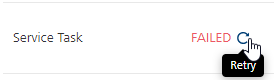 RetryTaskFailedButton 1Note: To view the actual error that has caused to failed the task, click the Retry icon next to the FAILED status of a service node/task.