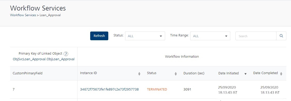| Date Initiated | Displays the information about when the instance was triggered. |