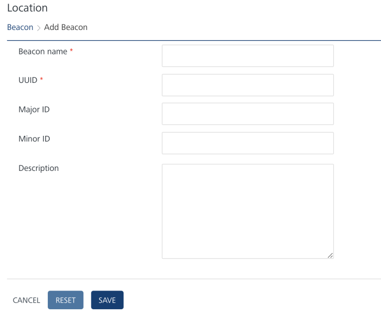 - Click Cancel if you do not want to save the entered details. The Beacon screen appears.