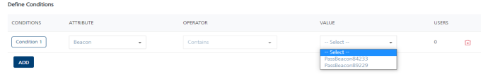 For the user attribute as Beacon, select the beacon from the drop-down list under the Value column.