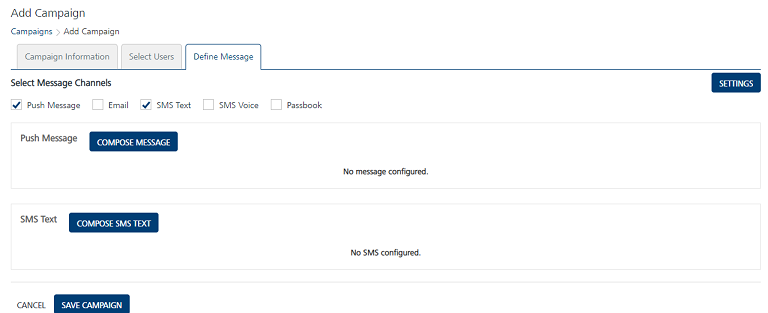 Click Campaigns under the Engagement section to view the Campaigns home page.