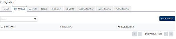 - In the User Attributes home page, click the Add Attributes button to add new user attributes.