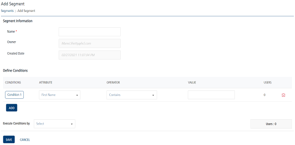 The added user attribute appears in Engagement >Segment > Add Segment.