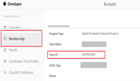 • Team ID: It is a unique 10-character string associated with an Apple Developer Account. Follow these steps to get the Team ID of your App: