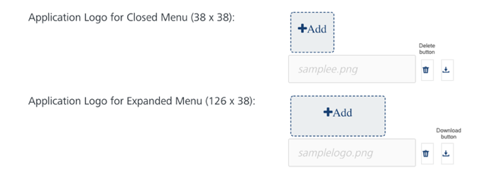 2. Application Logo for Expanded Menu (126X38): Click the +Add button to select the logo from your local system, and click Open.