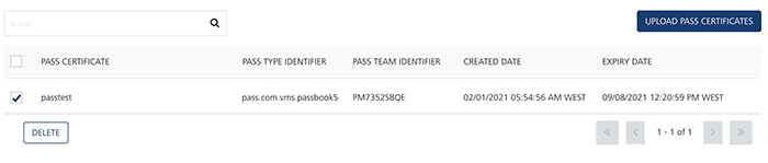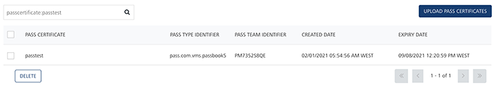 | Pass Certificate | The pass certificate column displays the uploaded pass certificate names.You can use the search option under the Pass Certificate column to search passes based on names of pass certificates. |