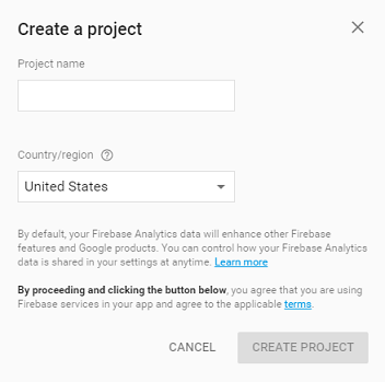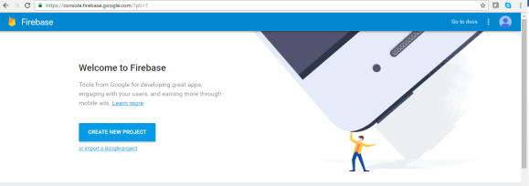 Open the Google developers console window by logging into: https://console.firebase.google.com/