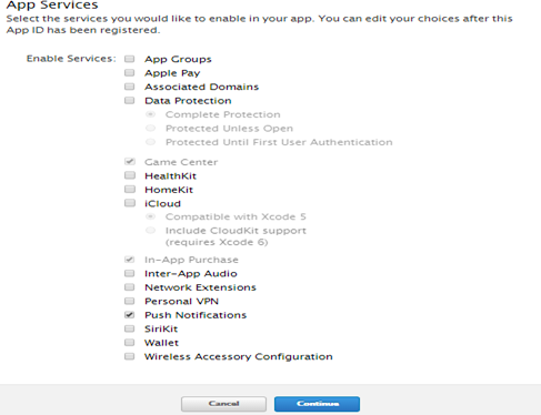 - Once an App ID is created, to enable push notifications you must have a related Development or Production APNS on your Mac machine.