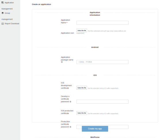 - Application Icons: To provide an icon for the application, click Select the File to browse the icon from its location. The selected icon name appears next to the Select the File button.