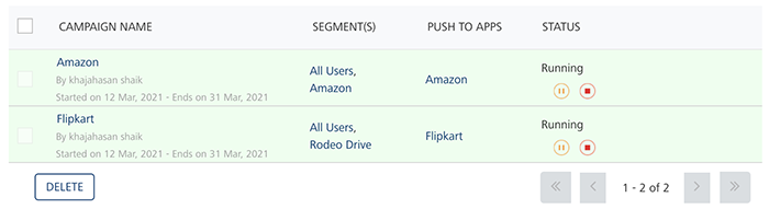 The system displays the confirmation message that the campaign execution initiated successfully. The color and the status of the pending campaign changes in the list-view.