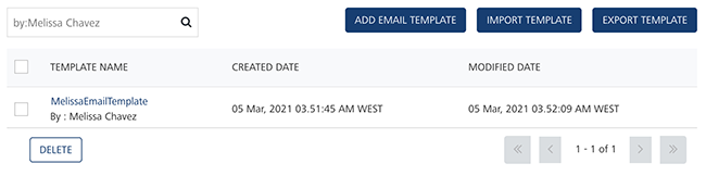 | Template Name | Displays the following details: -The email template name- The name of the email template creator |