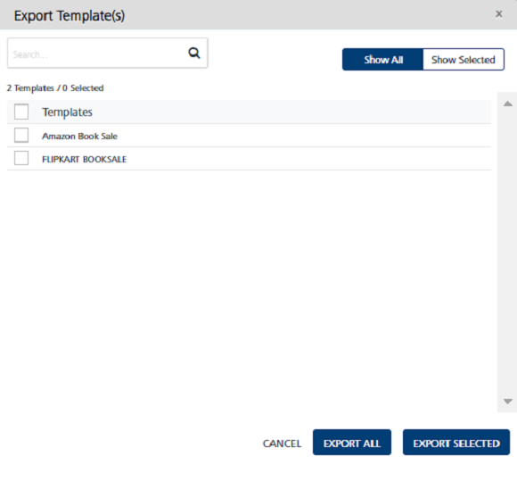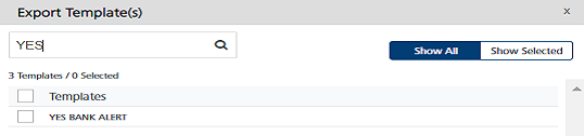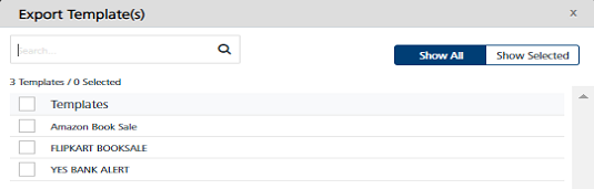 Show Selected: The Show Selected tab displays the selected message templates in the list-view. Select the check-box next to the Templates header to select all the message templates.