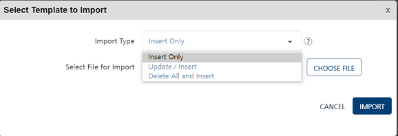 - Insert Only: By default, the Import Type option is set to Insert Only. The option reads the data in the file and inserts email templates in the Engagement server. If insert fails, the system displays an error.