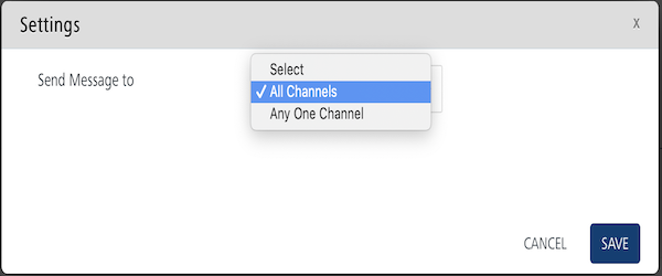 The Settings window appears on the page. By default, the Send Message to drop-down list is set to All Channels.