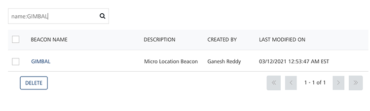 Search field: Click in the search field to view the options to search for a beacon. You can search beacons based on the following criteria: