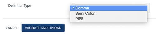 Delimiter Type: Select the type of delimiter from the Delimiter Type drop-down list, such as Comma (,), and Semicolon (;) or PIPE. By default, the feature is set to comma.