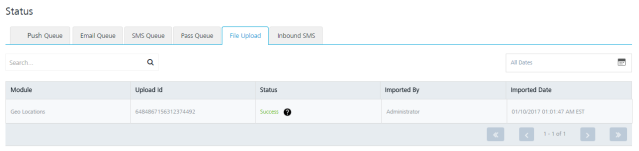 To view the current status of file uploaded, click the request ID. Clicking the request ID navigates you to the Settings > Status > File Upload page.