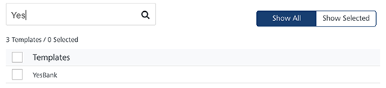 Show Selected: The Show Selected tab displays the selected push templates in the list-view. Select the check-box next to the Templates header to select all the push templates.