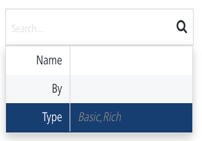 Search field: Click in the search field to view options to search a push template. You can search push templates based on the following criteria: