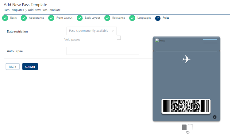 To add Pass Template – Rules, enter details for the following fields: