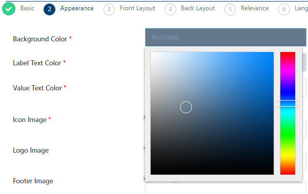 Background Color: To modify the default background color, click in the Background Color field.