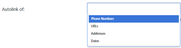 - Autolink of: The field is used to decide what type of data has to be auto linked. By default, all are auto inked.