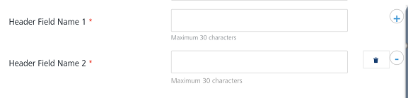 - Header Field Name 1: Enter a name for the Header Field Name. The name should be unique throughout the pass.