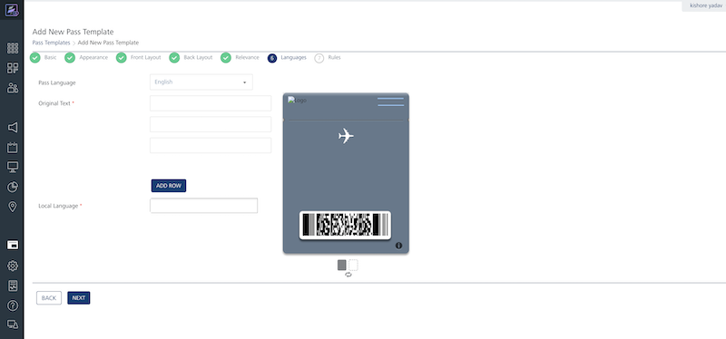 Based on a user’s preference, Icon image, Logo image and Footer images are also localized. To localize the pass for multiple languages, select the desired language and provide translation. You can also provide a separate image for each language.