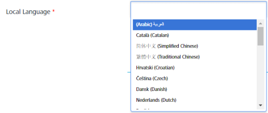 Select the required local language from the drop-down list.