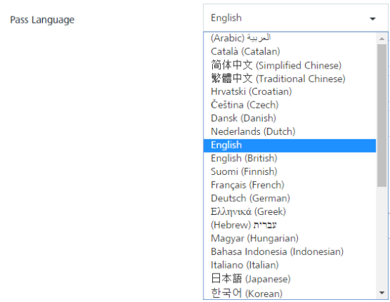 Pass Language: Select the required language from the drop-down list. By default, it is set to English.