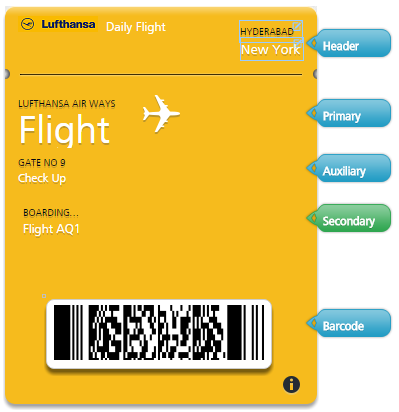 Important: You can click pointers displayed on the right side of the Pass Template to navigate the respective sections, such as Header, Primary, Secondary and Barcode.