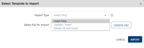 - Insert Only: By default, the Import Type option is set to Insert Only. The option reads the data in the file and inserts Pass templates in the Engagement server. If insert fails, the system displays an error.