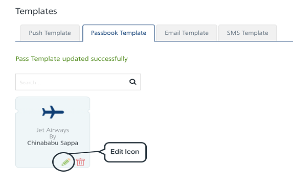 Click the Edit Template icon on the required template on the Passbook Template screen.