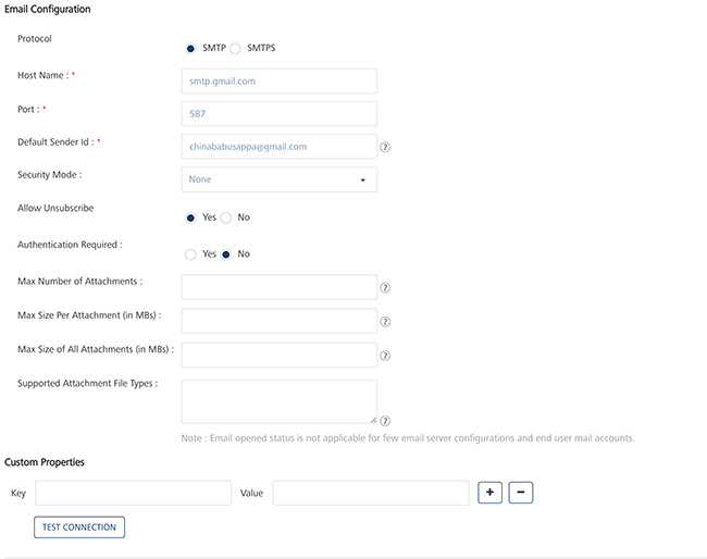 For more details about how to configure the email account, refer: Adding Email Configuration