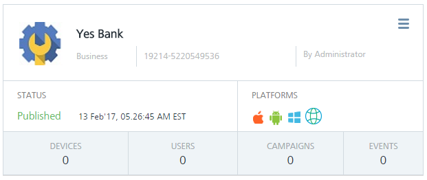 After entering the required platform details, Lisa saves the app. The default status of a newly added app in Engagement server is unpublished. Lisa needs to publish the app as only published apps can be used for sending messages to customers.