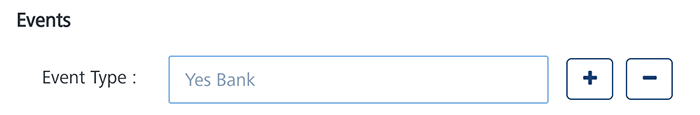 The event type is set when a new event is created and the name is commonly used to refer the specific event. Lisa adds a new event as Yes Bank.