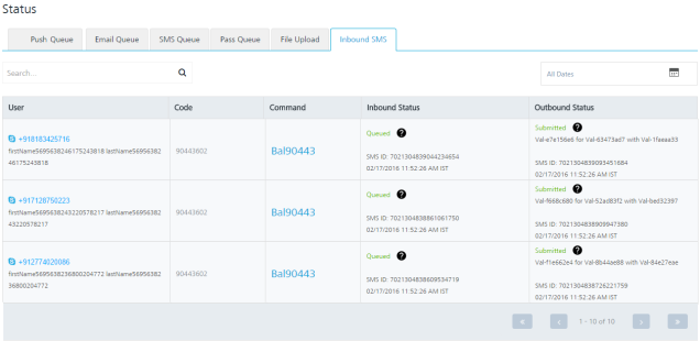 | Inbound Status | The inbound status column displays the current inbound status of the message such as queued. |