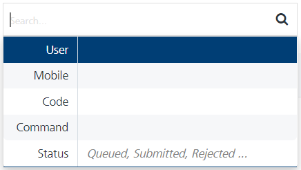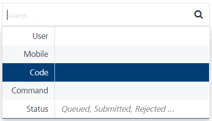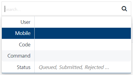 Search field: Click in the Search field to view options to search an inbound SMS. You can search inbound SMS based on the following criteria: