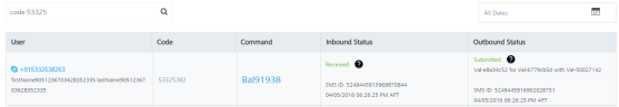 | Code | The code column displays the code assigned to the inbound SMS. |