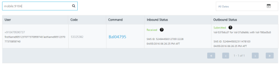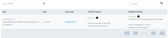 Note: To clear your search result, click in the Search field to view the Inbound SMS page.