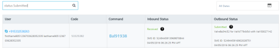 Inbound Status: Enter the inbound status in the Search field as queued, submitted or rejected and click Enter.