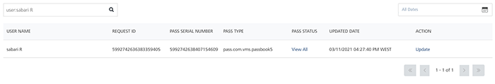 | Pass Status | To view all the status details with respect to a specific pass type, click the View All link under the Pass Status column. |